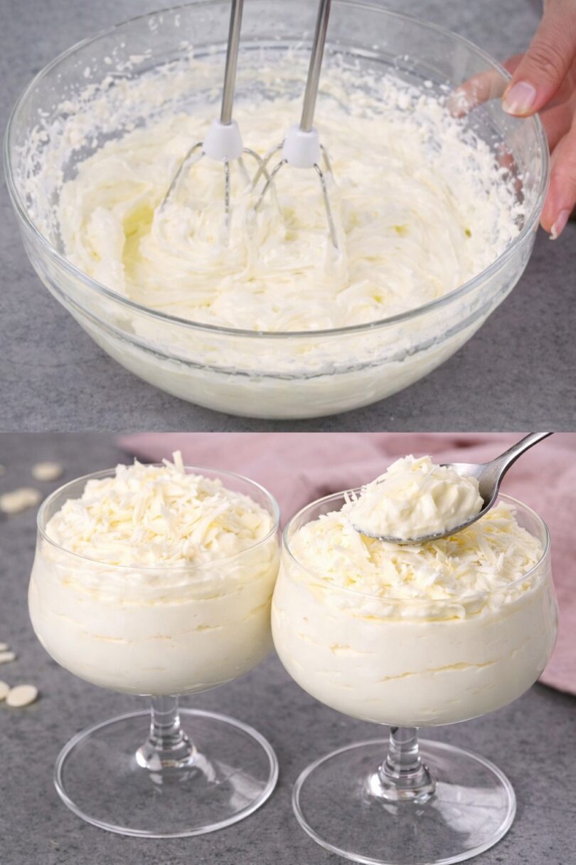 Diese weiße Schokoladenmousse ist der Inbegriff von Eleganz und Einfachheit. Mit nur vier Zutaten zauberst du ein cremiges Dessert, das auf jeder festlichen Tafel glänzt. Samtig, luftig und herrlich süß – ideal für Weihnachten, Silvester oder besondere Momente mit der Familie 🎄🍨