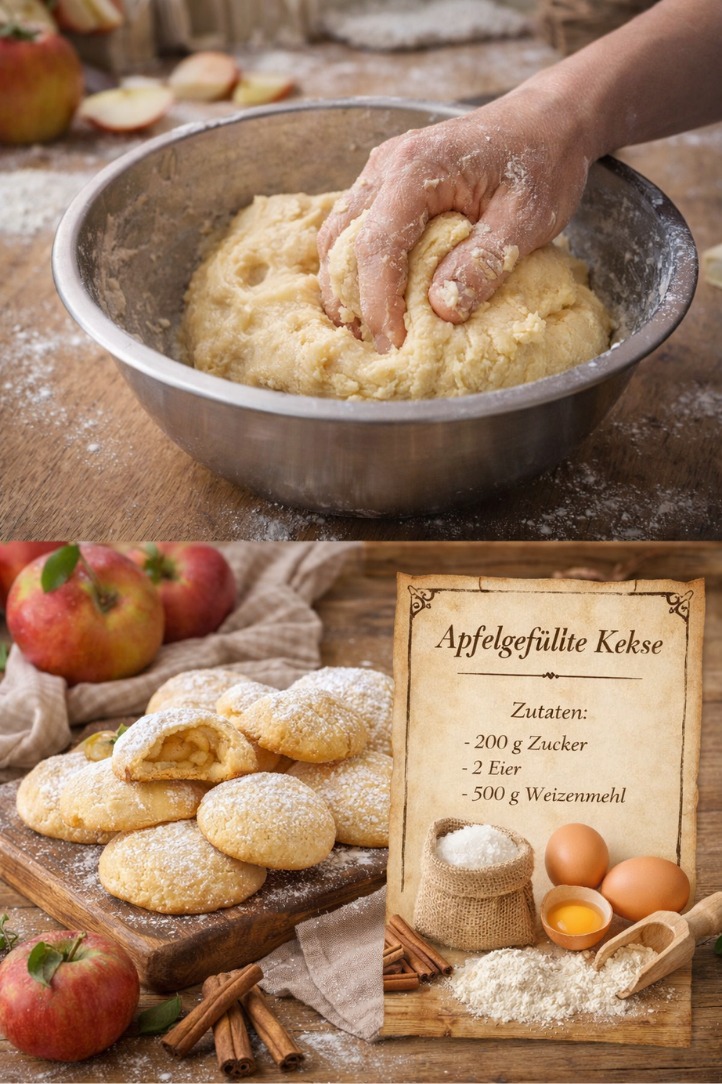 Diese apfelgefüllten Kekse sind ein echtes Wohlfühlgebäck: außen zart, weich und buttrig, innen fruchtig-süß mit feinem Zimt- und Vanillearoma. Der Teig ist besonders geschmeidig und sorgt dafür, dass die Kekse fast im Mund schmelzen. Perfekt für die Herbst- und Winterzeit, zum Kaffee oder als liebevolles Geschenk aus der Küche ✨