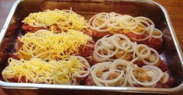 Sahneschnitzel mit Mett & Käse, überbacken