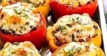 Zutaten: 6 große Paprikaschoten (rot, gelb oder grün) 300 g gemischtes Hackfleisch (Rind und...