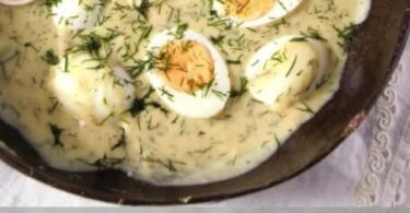 Zutaten: 4 Eier 1 Zwiebel, fein gehackt 2 EL Butter 2 EL Mehl 300 ml Milch 200 ml Gemüsebrühe 2 EL...