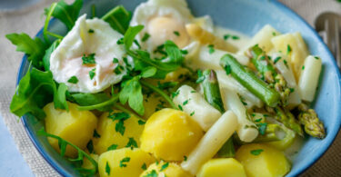 Spargelrezepte: Spargelragout mit pochierten Eiern