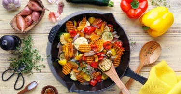 Zutaten: 2 EL Olivenöl 2 Knoblauchzehen, gehackt 1 Zwiebel, in dünnen Scheiben 2 Paprikaschoten, in...