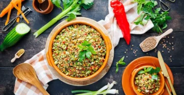Zutaten: 1 Tasse grüne oder braune Linsen, ungekocht 2 Tassen Wasser 1/2 rote Zwiebel, fein gehackt...