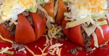 Zutaten: 6 große Tomaten 250 g mageres Rinderhackfleisch oder Putenhackfleisch 1 Zwiebel, gehackt 1...