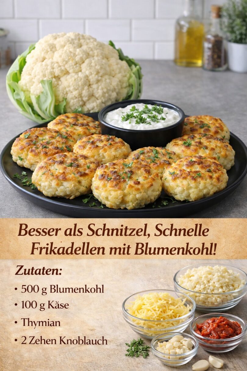 Diese leckeren Blumenkohl-Frikadellen sind saftig, aromatisch und eine tolle vegetarische Alternative zum klassischen Schnitzel. Schnell zubereitet, goldbraun gebraten und mit Käse extra würzig – perfekt für alle, die Lust auf etwas Herzhaftes ohne Fleisch haben.