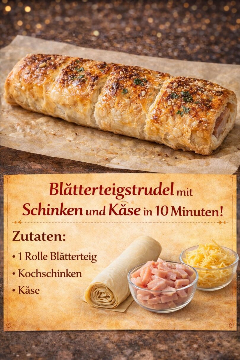 Knuspriger Blätterteig, herzhafte Füllung und kaum Vorbereitungszeit – dieser schnelle Strudel ist perfekt für den Feierabend, Gäste oder als unkompliziertes Ofengericht.