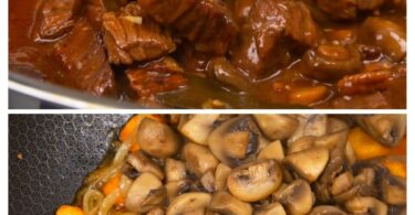 Herzhafter Rindfleisch-Eintopf mit Pilzen und Speck