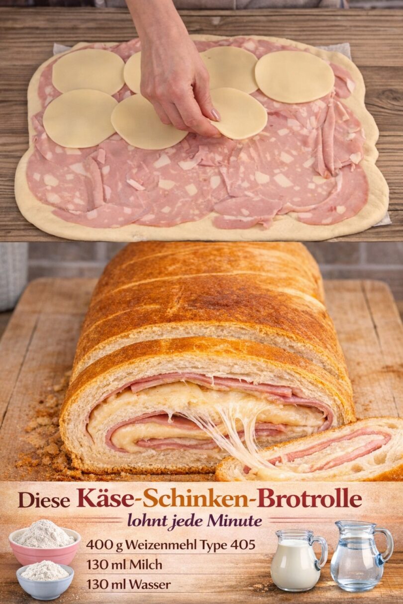 Diese Brotrolle lohnt jede Minute – Gefüllte Käse-Schinken-Brotrolle