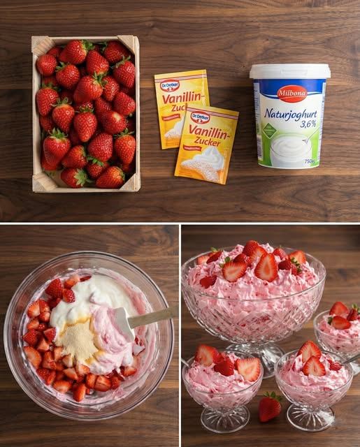 Dieses schnelle Erdbeer-Dessert ist perfekt, wenn du in kurzer Zeit etwas Frisches und Süßes zaubern möchtest. Cremiger Joghurt trifft auf fruchtige Erdbeeren – leicht, lecker und ideal für warme Tage.