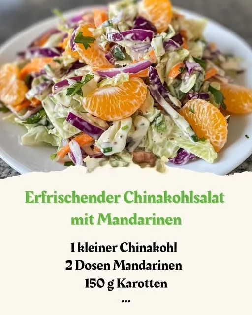 Dieser Chinakohlsalat mit Mandarinen ist ein echter Genuss fĂźr alle, die frische und aromatische Salate lieben! đ Die Kombination aus knackigem Chinakohl, sĂźĂen Mandarinen und einer cremig-fruchtigen Sauce macht ihn perfekt fĂźr jede Gelegenheit â ob als Beilage zum Grillen oder als leichtes Hauptgericht.