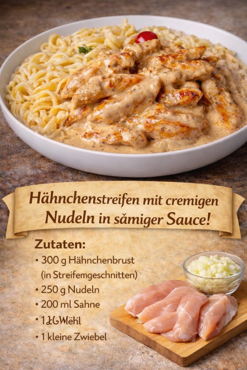 • 300 g Hähnchenbrustfilet, in feine Streifen geschnitten
