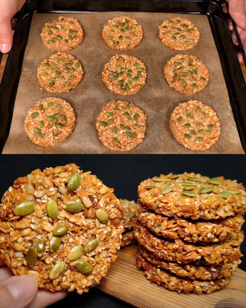 Diese Haferkekse sind nicht nur knusprig und aromatisch, sondern auch voller gesunder Zutaten. Karotten, Nüsse und Samen sorgen für Ballaststoffe, Vitamine und wertvolle Fette, während Honig und Rosinen die Kekse auf natürliche Weise süßen. Perfekt als Snack, Frühstück oder für die Lunchbox.