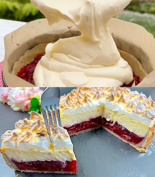 Die Himmelstorte mit Sauerkirschen ist ein Klassiker der deutschen Kuchenkultur und trägt ihren Namen nicht ohne Grund: Lockerer Biskuitboden, luftiges Baiser, fruchtige Sauerkirschen und eine cremige Schicht Sahne verbinden sich zu einem wahren Traumstück. Ob für den Sonntagskaffee, eine festliche Tafel oder einfach als besonderes Highlight – diese Torte lässt Herzen höherschlagen.