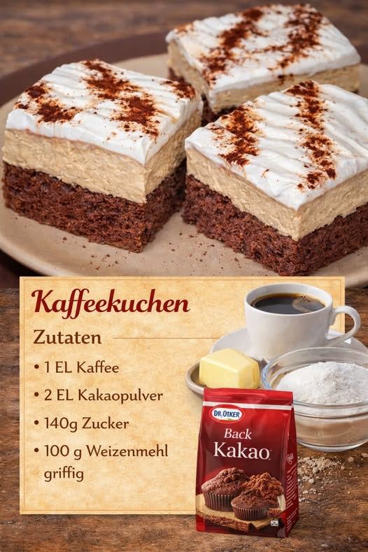 Dieser Kuchen vereint fluffigen Biskuit, aromatische Kaffeecreme und leichte Sahne – einfach unwiderstehlich. Perfekt für Kaffee-Liebhaber und alle, die etwas Süßes mit Wow-Effekt möchten.