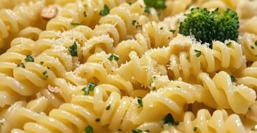 Nudeln in Sahnesauce mit Brokkoli und Erdnuss