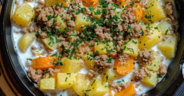 Kartoffel Hackfleisch Topf mit Schmand und Möhren