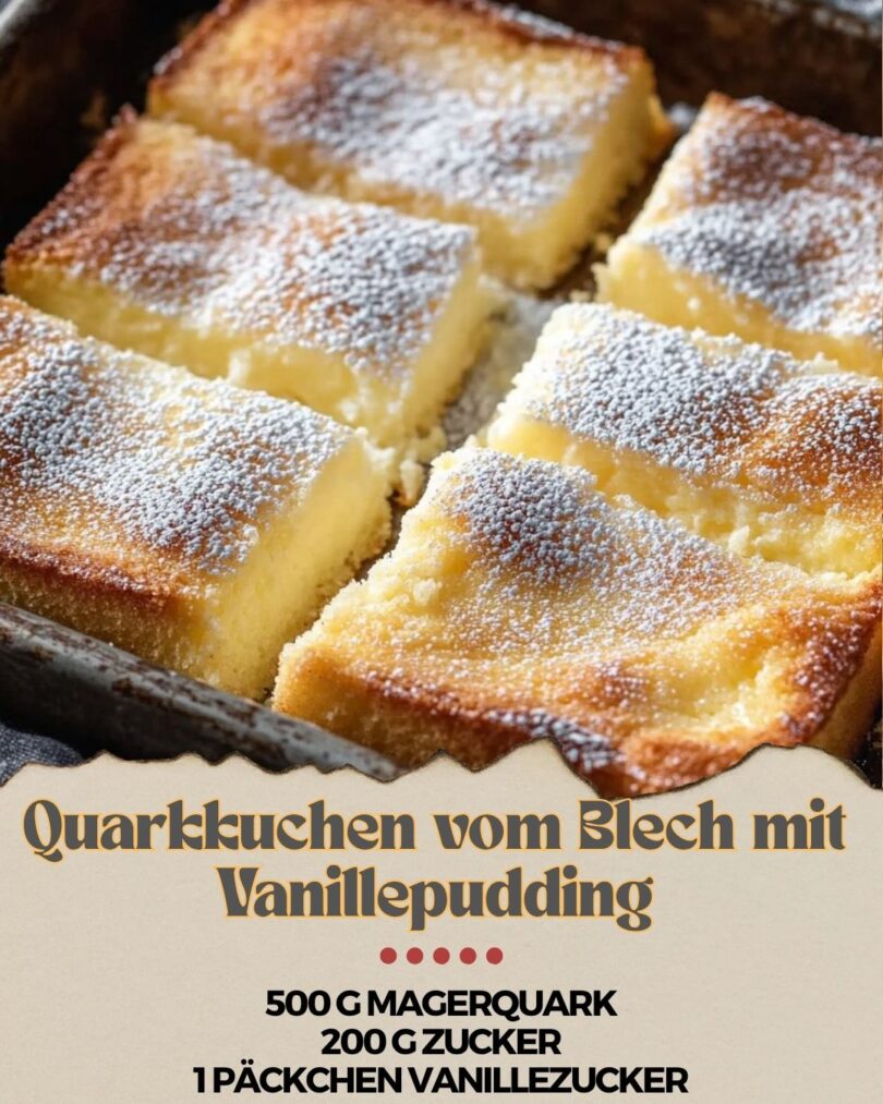 Wenn sich cremige Quarkmasse und feiner Vanillepudding vereinen, entsteht ein Blechkuchen, der nicht nur wunderbar saftig, sondern auch herrlich aromatisch ist. Dieser Quarkkuchen ist ein echter Klassiker, den man sowohl im Alltag als auch zu besonderen Anlässen genießen kann – einfach, schnell und unglaublich lecker!