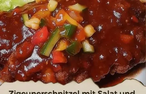 Knuspriges Schnitzel, würzige Paprika-Soße, frischer Salat und goldgelbe Pommes – dieses Gericht ist pure Hausmannskost und sorgt garantiert für zufriedene Gesichter am Tisch! 😋 Perfekt für ein deftiges Mittag- oder Abendessen, das schnell gelingt und allen schmeckt.